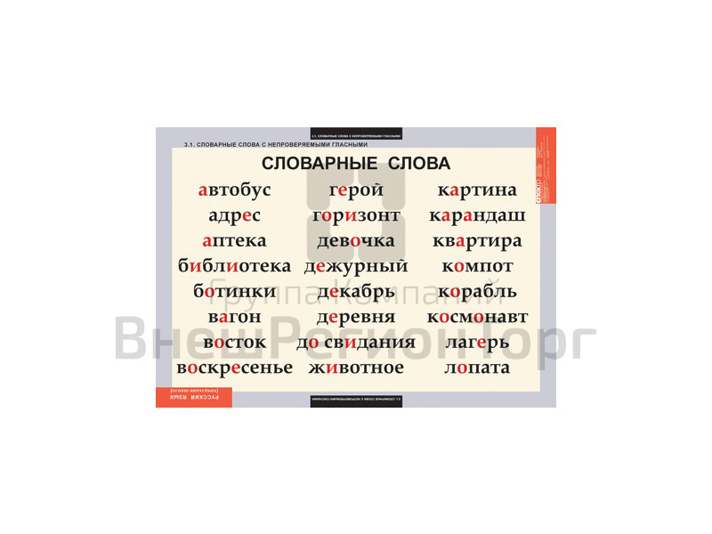 У нас вы можете купить Таблицы "Словарные слова", сравнить цены, получить прайс-лист, получить отзывы реальных покупателей. Мы соответствуем требованиям ФГОС, ГОСТ и СанПиН. Мы работаем на основании федеральных законов No44-ФЗ и No223-ФЗ.