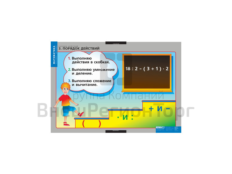 У нас вы можете купить Таблицы "Порядок действий", сравнить цены, получить прайс-лист, получить отзывы реальных покупателей. Мы соответствуем требованиям ФГОС, ГОСТ и СанПиН. Мы работаем на основании федеральных законов No44-ФЗ и No223-ФЗ.