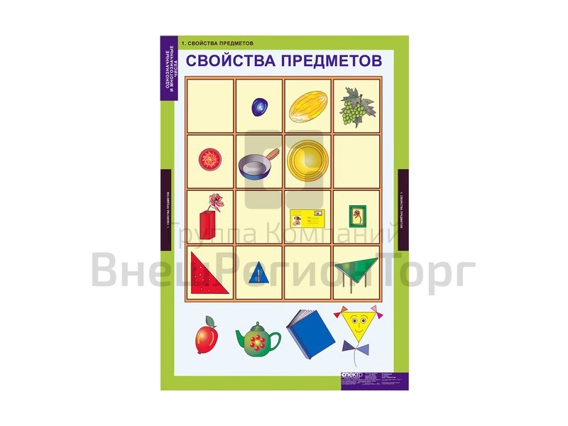Свойства предметов. Нумерация чисел первого десятка. Десяток. Компоненты сложения и вычитания. Таблицы разрядов и классов. Умножение на однозначное число. Деление на однозначное число.Размер: 68х98 см