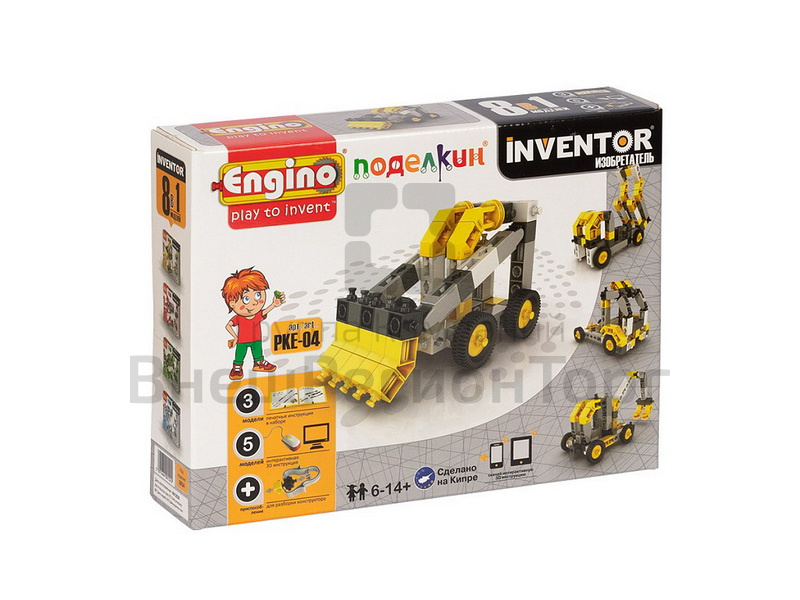 Серия INVENTOR от ENGINO & Поделкин - конструктор для юных изобретателей. С его помощью ребенок способен раскрыть свой творческий потенциал, конструкторские навыки, моторику рук и координацию, а также воображение и аккуратность. Разнообразие деталей позволит собрать не только 8 моделей спецтехники по инструкции, но и создавать собственные конструкции. Благодаря уникальной технологии крепления деталей, запатентованной во всем мире и позволяющей легко и быстро объединять детали и регулировать их длину, все наборы конструкторов Engino совместимы между собой, что позволяет создавать масштабные творения. Помимо инструкций по сборке в буклете, ко всем наборам можно посмотреть интерактивную инструкцию на сайте Engino или в бесплатном приложении Engino kidCAD.