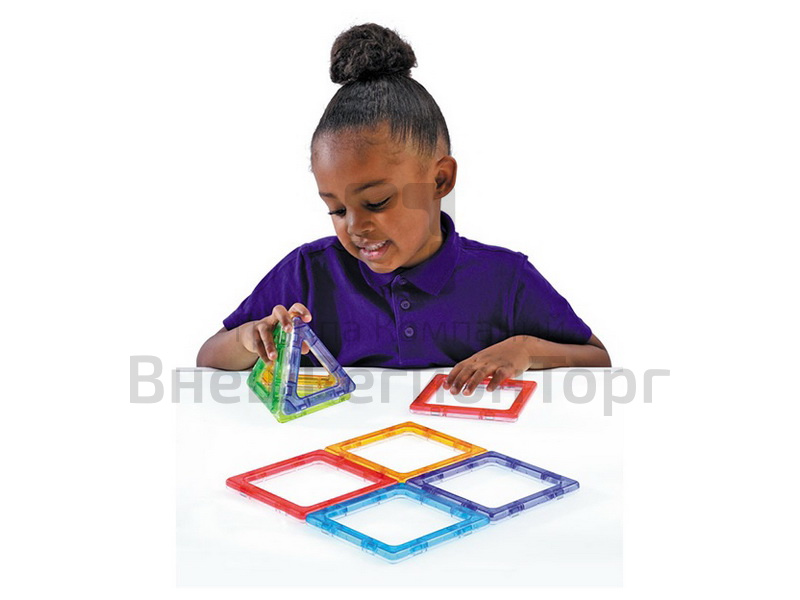 При помощи этого конструктора дети в процессе игры смогут уже в раннем возрасте развить пространственное мышление, осваивая работу с двух- и трёхмерными фигурами. Включает в себя полупрозрачные геометрические фигуры — квадрат и треугольник 5 цветов (красный, голубой, зеленый, оранжевый, синий).
