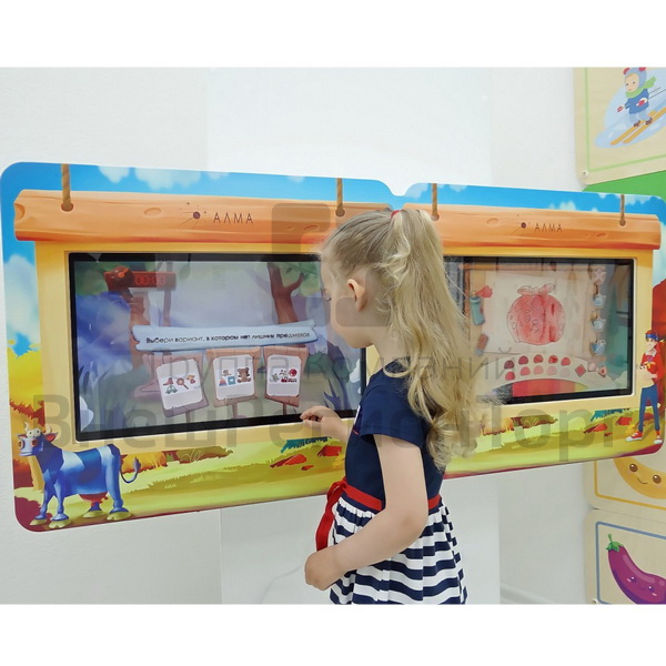 На игровых панелях установлено программное обеспечение «АЛМА Дошкольное образование», включающее более 80 обучающих игр и 110 тестов, направленных на развитие памяти, внимания, логики, на изучение счета и английского языка. Прохождение всех игр гарантирует появление у ребенка базового представления об окружающем его мире.