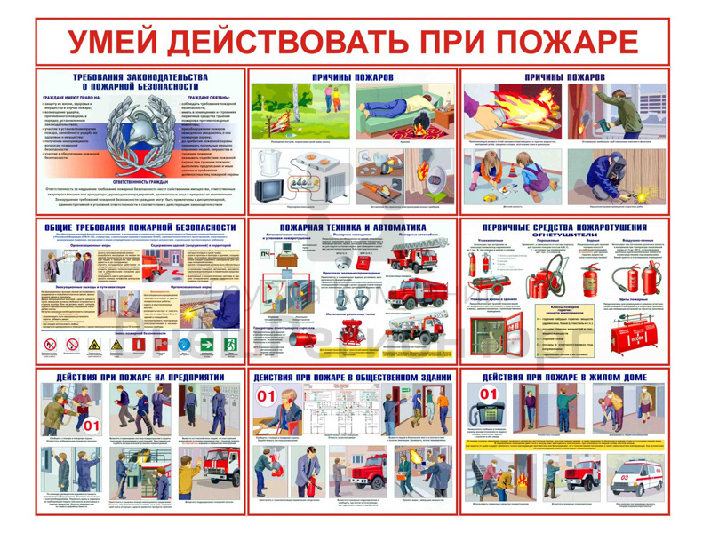 Плакаты Действия при пожаре, 29,7х42 см, 9 шт.