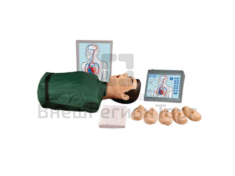 Данный тренажер-торс предназначен для отработки навыков оказания экстренной доврачебной помощи. После правильно проведенного комплекса реанимации тренажер автоматически "оживает": появляется пульс на сонной артерии, сужаются зрачки пострадавшего.