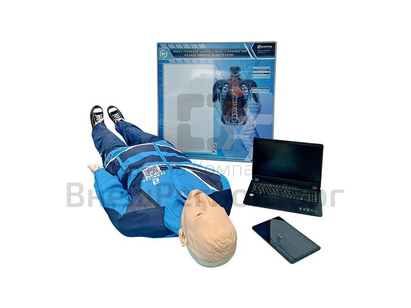 Робот-тренажер предназначен для отработки навыков оказания первой помощи на месте происшествия. Внешне робот-тренажер имитирует тело взрослого человека со всеми необходимыми анатомическим особенностями и возможностью запрокидывать голову. Также имеются накладные силиконовые "травмы" и "ранения" различной степени тяжести толщиной не менее 7 мм с возможностью замены и установки на любую часть тела робота-тренажера.