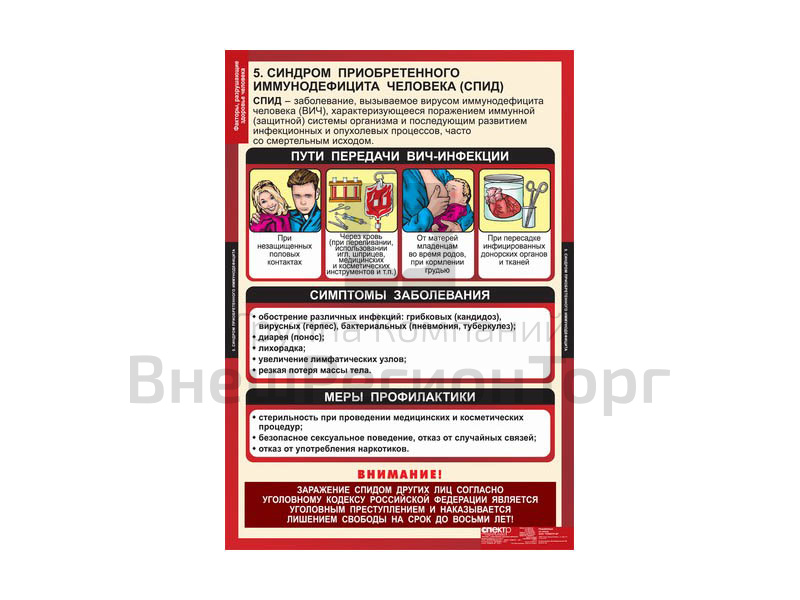 Алкоголизм. Наркомания. Табакокурение. Болезни, передаваемые половым путем. Синдром приобретенного иммунодефицита человека (СПИД). Инфекционные заболевания. Воздействие электромагнитных полей и шума. Загрязнение окружающей среды.Размер: 68х98 см