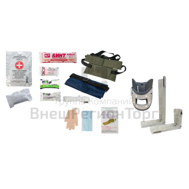 - Включает широкий спектр медицинских средств для перевязки, остановки кровотечений, иммобилизации и защиты пострадавших.