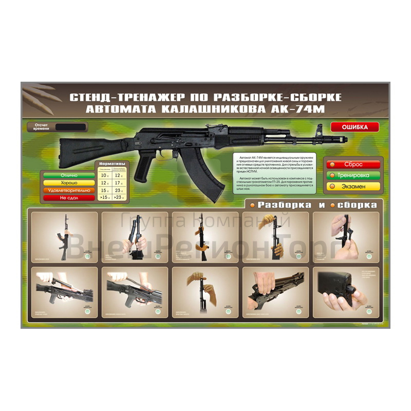 У нас вы можете купить Стенд-тренажер по сборке-разборке автомата Калашникова АК-74М, сравнить цены, получить прайс-лист, получить отзывы реальных покупателей. Мы соответствуем требованиям ФГОС, ГОСТ и СанПиН. Мы работаем на основании федеральных законов No44-ФЗ и No223-ФЗ.
