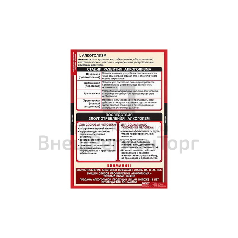 Подробное описание Таблицы демонстрационные "Факторы, разрушающие здоровье человека"