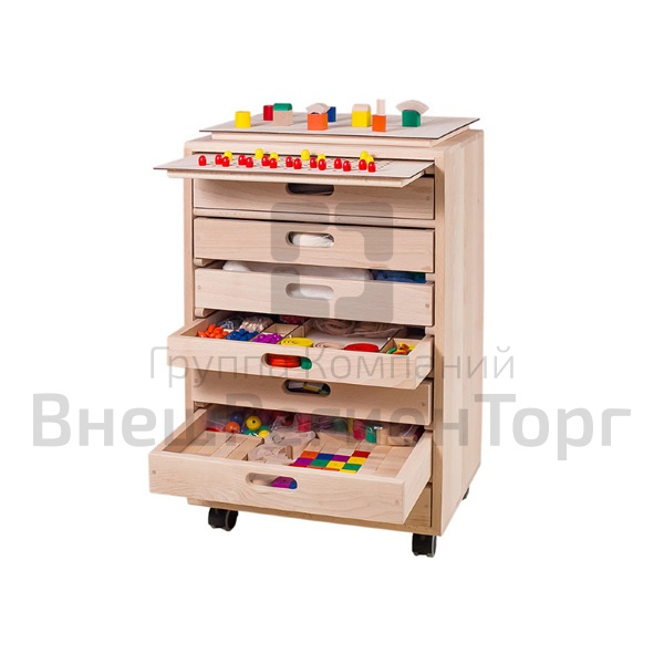 Набор «Фроссия» представляет собой компактный мобильный стеллаж, в котором размещены 7 отдельных модулей различного наполнения для коррекционно-развивающей работы с детьми.