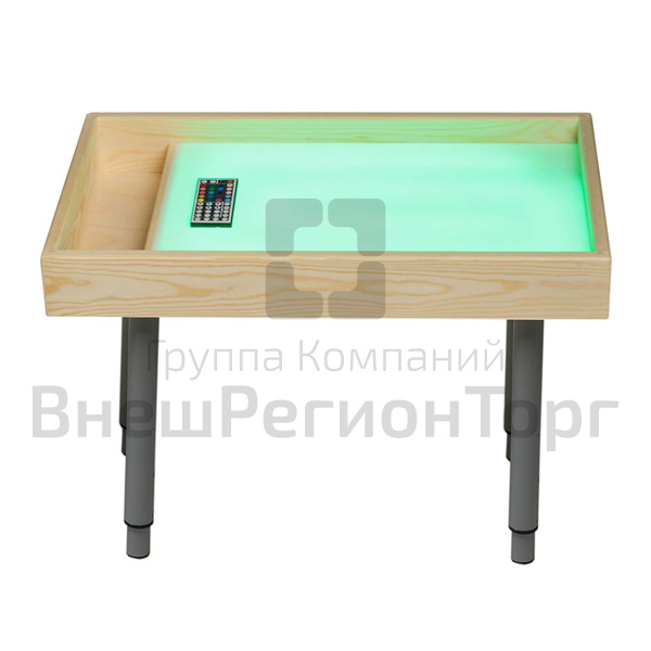 Корпус стола выполнен из массива сосны, внутри специальный отсек для хранения, а наличие боковых бортиков предотвращает высыпание песка наружу. Поверхность для рисования выполнена из безопасного оргстекла. Имеется регулируемая по яркости 16-цветовая подсветка с пультом управления. Регулируемые по высоте ножки позволят скорректировать высоту стола в соответствии с ростом ребенка.
