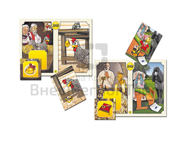 Каждое игровое поле посвящено одной из известных сказок. На карточках изображены персонажи и предметы, которые встречаются в этих сказках и оказывают значительное влияние на ход событий в них. Карточки служат продолжением изображений на игровых полях и содержат общие с ними детали фона.
