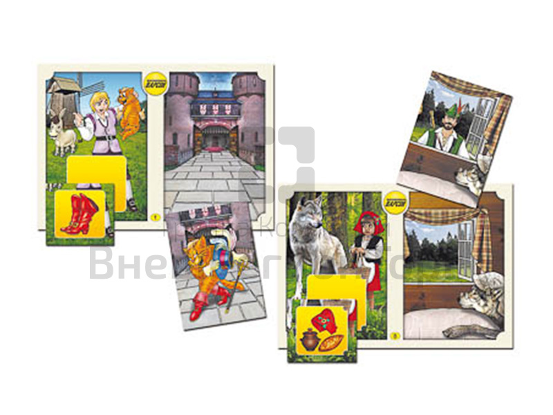 Каждое игровое поле посвящено одной из известных сказок. На карточках изображены персонажи и предметы, которые встречаются в этих сказках и оказывают значительное влияние на ход событий в них. Карточки служат продолжением изображений на игровых полях и содержат общие с ними детали фона.