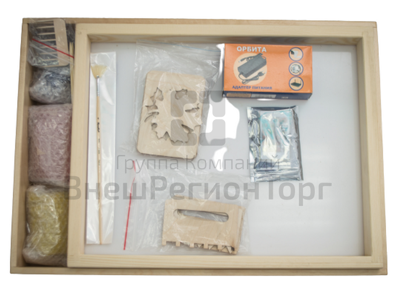 В составе модуля: световой стол, песок разных цветов, трафареты для рисования.