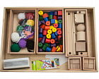 В составе модуля: основа с круглыми отверстиями; разноцветные фишки; кубики с цифрами и отверстиями для шнурка; фигурки, из которых можно собрать круг.