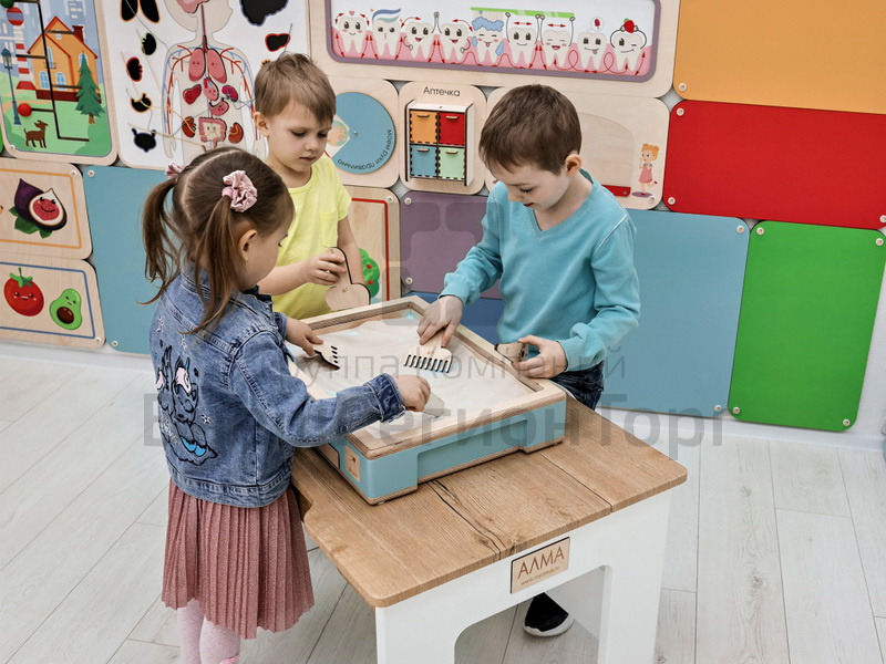 Стол помогает развивать моторику, сенсорику, креативное мышление; когда малыш рисует сразу двумя руками, это способствует развитию межполушарной асимметрии.