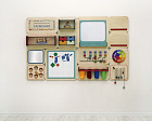 - Доска в клетку и магниты, хранящиеся в ящичках. Это аналог ларчика Воскобовича, только поверхность не ковровая, а магнитно-маркерная. Также фигуры в магнитах могут использоваться для развития ребёнка по системе Фребеля. Дети из фигур собирают картины, которые психолог анализирует.
