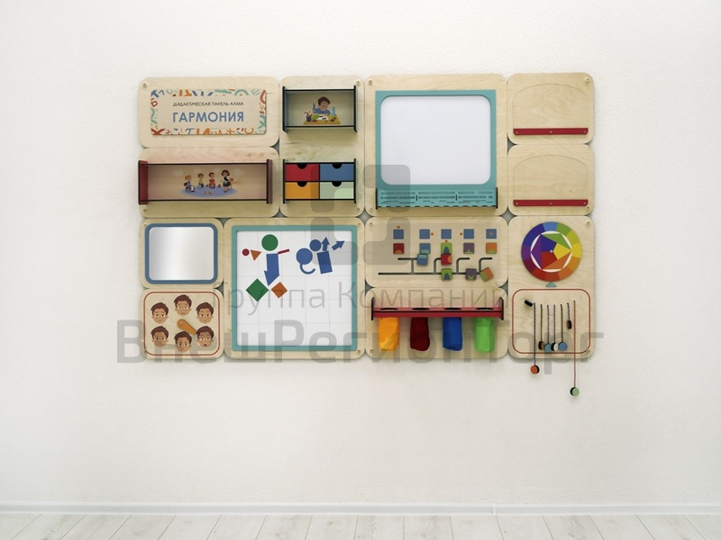Настенная коррекционно-развивающая панель «Гармония» предназначена для кабинета детского психолога. Оформляет пространство стен и используется как эффективный коррекционно-профилактический рабочий инструмент. Подходит для детских садов различного типа, коррекционных образовательных центров и других детских учреждений.