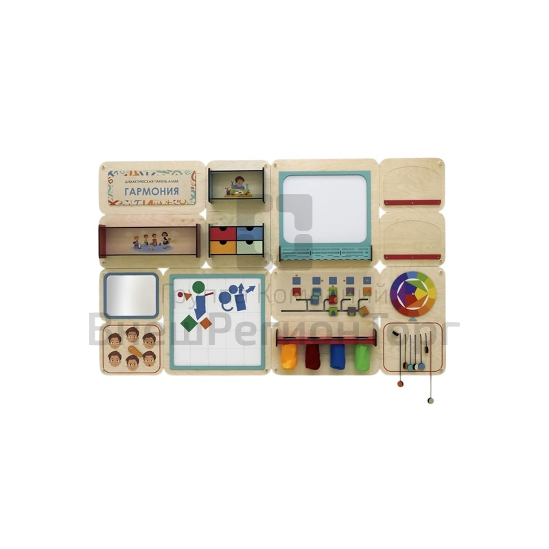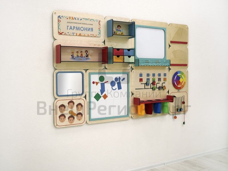 Настенная коррекционно-развивающая панель «Гармония» предназначена для кабинета детского психолога. Оформляет пространство стен и используется как эффективный коррекционно-профилактический рабочий инструмент. Подходит для детских садов различного типа, коррекционных образовательных центров и других детских учреждений.