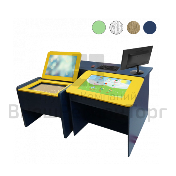 Профессиональный модульный стол для кабинета детского психолога-дефектолога. Развивающий интерактивный комплекс предназначен для проведения занятий с детьми, обследования психологического здоровья ребенка, диагностики проблем и правильного выбора их решения. В комплекте идут лучшие методики для детей, разнообразные наборы для творчества и развития, специализированное программное обеспечение.