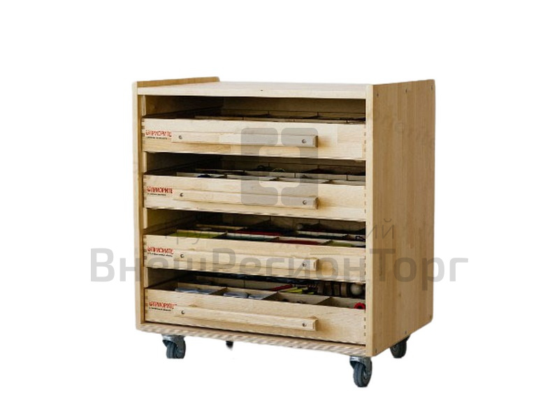 - Удобная система хранения: тумба на колесах и чемоданчики.