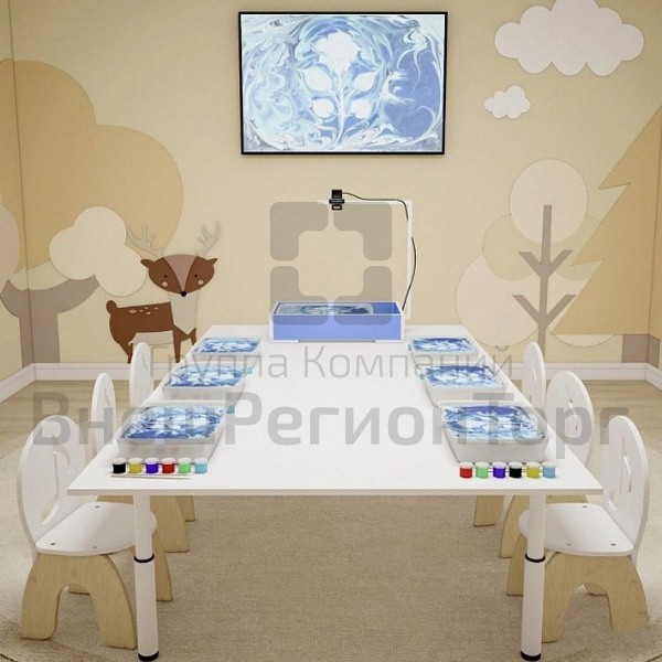 - Стол учителя для демонстрации работы - "Водная Фантазия!" с яркой подсветкой, большим поддоном для рисунка формата А3, удобной крышкой и ножками; размер стола - 60х40 см;