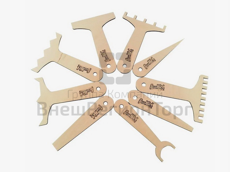 Подробное описание Набор инструментов для рисования песком (9 шт, фанера)