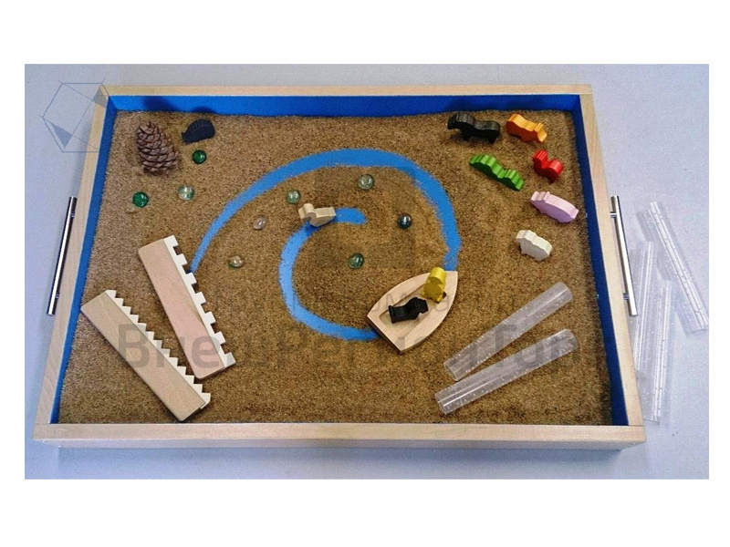 - Ящик для работы с песком (дно и стенки синего цвета);