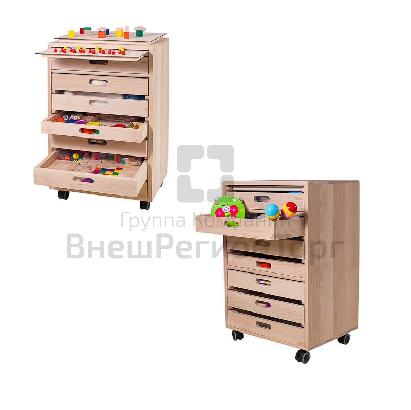 Мобильный стеллаж для хранения модулей изготовлен из натурального дерева (бука) и сконструирован в соответствии с педагогико-эргономическими требованиями, обеспечивает быстрый доступ к дидактическому материалу, простоту обзора и подбора необходимого для занятий материала.