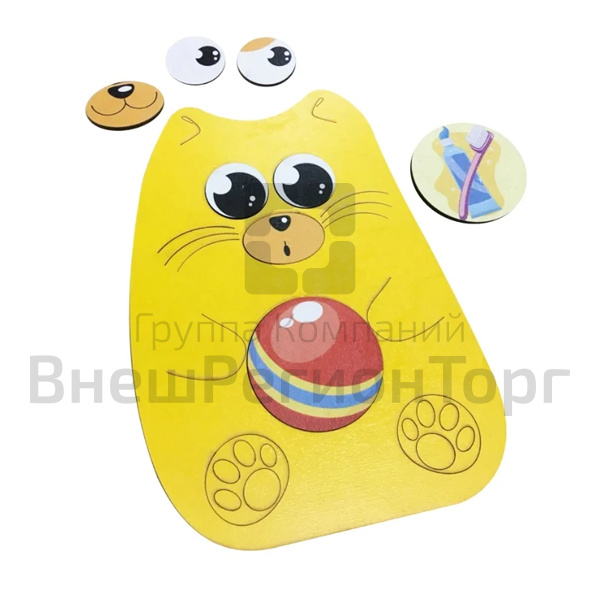 Развивает крупную и мелкую моторику, высшие психические функции, социально-бытовые навыки. Подходит для познавательно-речевого развития детей. Рекомендован для детей с нормой развития и нарушением в здоровье.В комплект входит котик и 5 пар глаз, мордочек и игрушек.