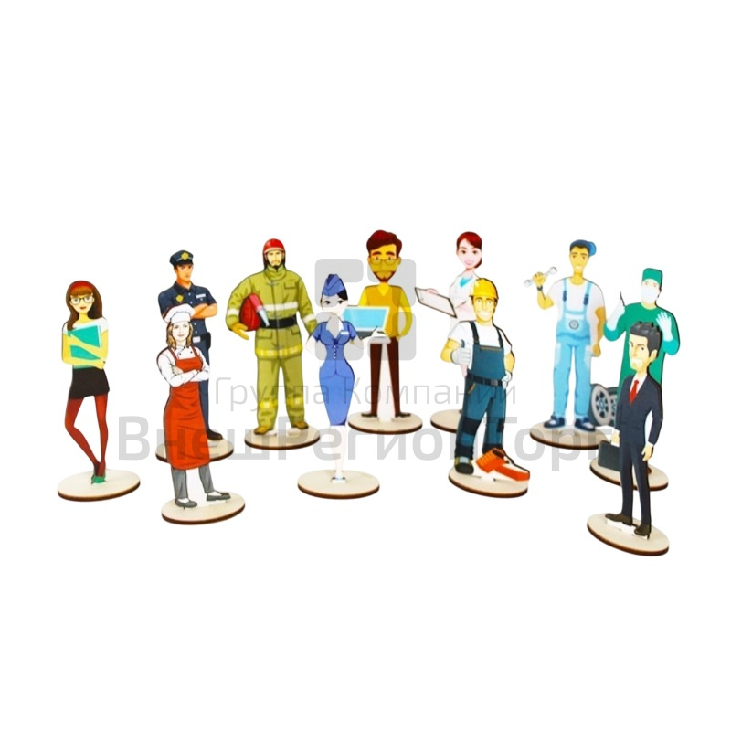 Фигурки изображают представителей разных профессий. Используются в работе с взрослыми и подростками. Подходят для песочной терапии и расстановок. Позволяют визуализировать профессиональные роли, карьерные сценарии и взаимодействие в трудовом коллективе.