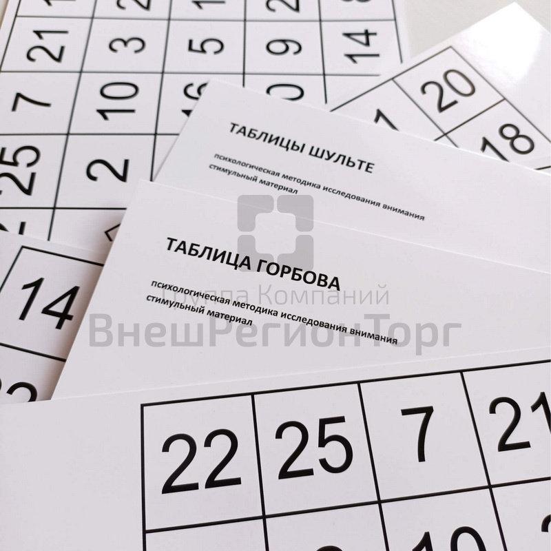 У нас вы можете купить Таблицы Шульте + таблица Горбова, сравнить цены, получить прайс-лист, получить отзывы реальных покупателей. Мы соответствуем требованиям ФГОС, ГОСТ и СанПиН. Мы работаем на основании федеральных законов No44-ФЗ и No223-ФЗ.