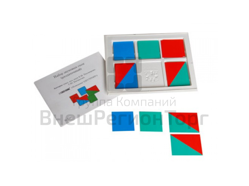 Квадратные карточки обозначают отдельную букву, а прямоугольные – слог. Для обозначения звуков использовано традиционное цветовое кодирование (гласный звук обозначается красным цветом, твердый согласный – синим, мягкий согласный – зеленым).