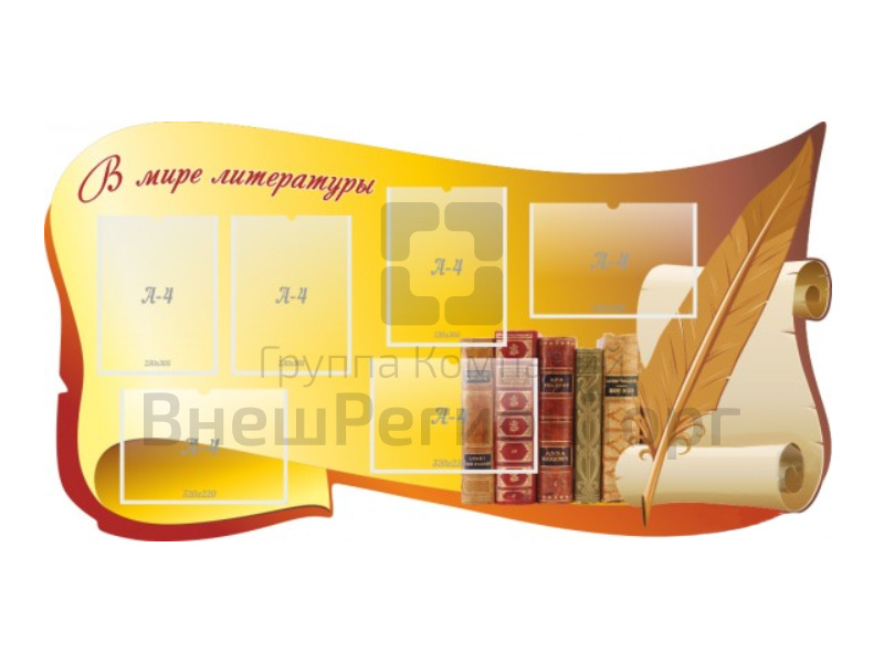 Подробное описание Стенд В мире литературы 150х80 см резной