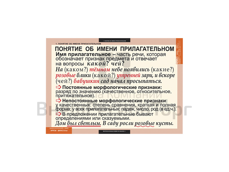 Подробное описание Таблицы "Русский язык. Имя прилагательное"