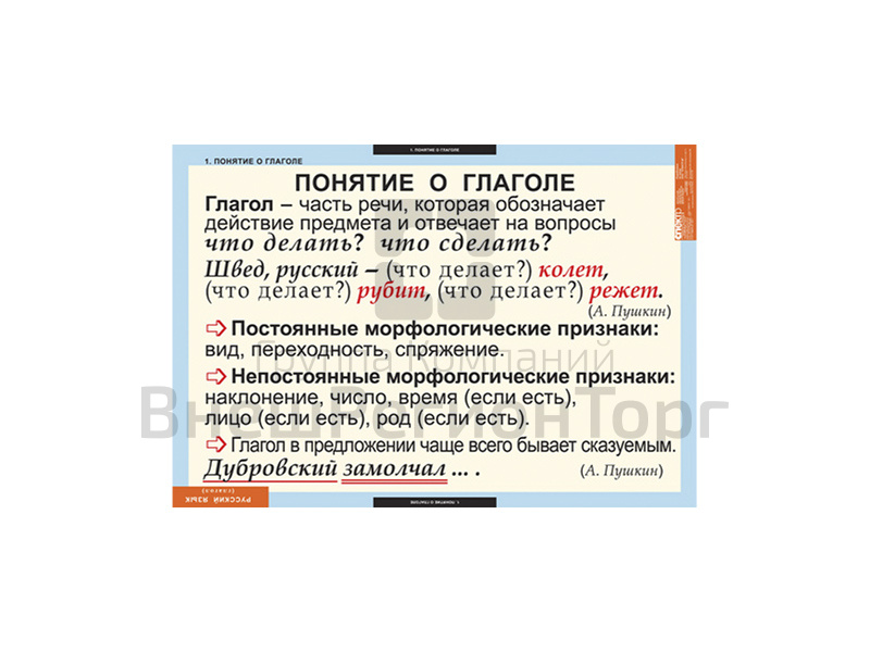 Подробное описание Таблицы "Русский язык. Глаголы"