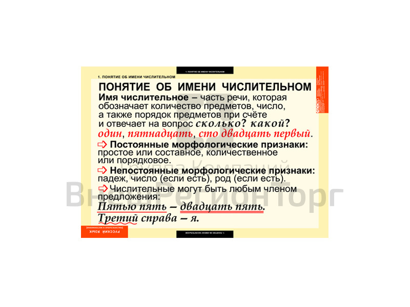 Подробное описание Таблицы "Русский язык. Числительные и местоимения"