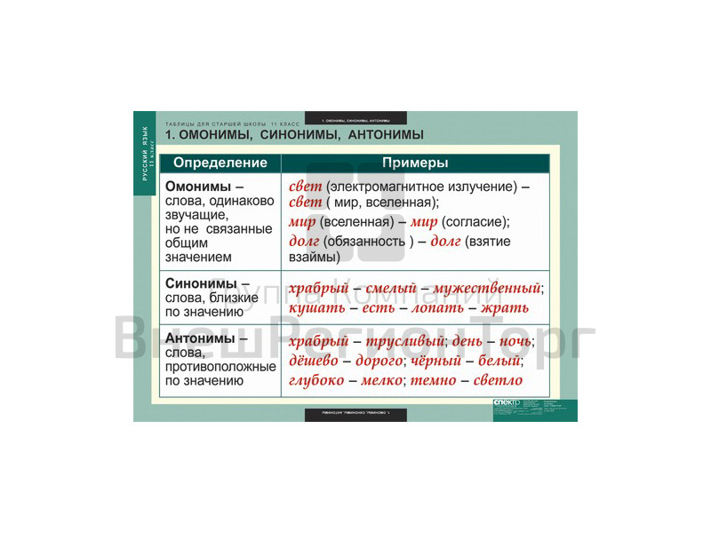 Подробное описание Таблицы для старшей школы по русскому языку 11 класс