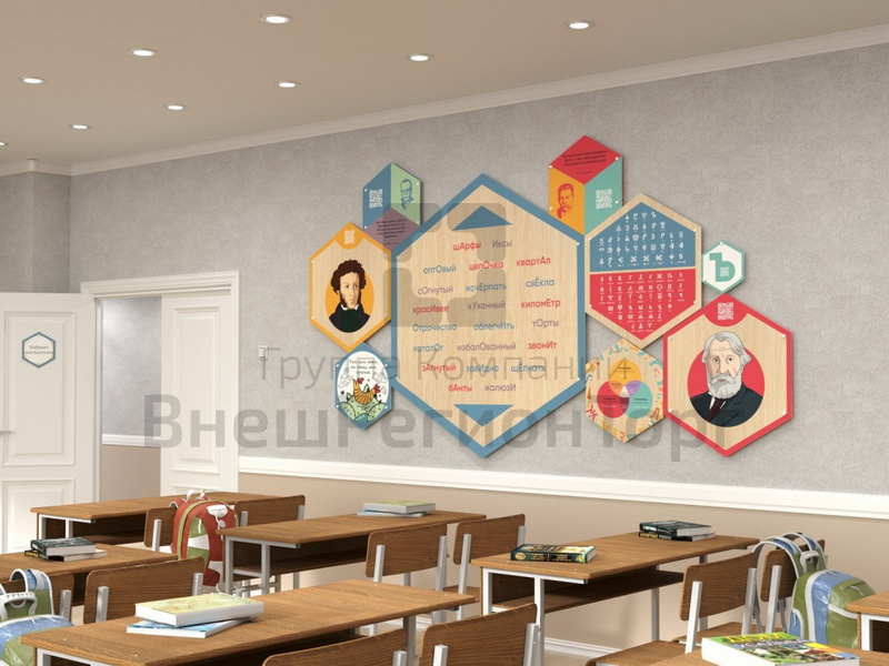 Образовательные панели для оформления стен школьных учреждений. Выполняют две функции: декор и соответствующее предмету обучение.