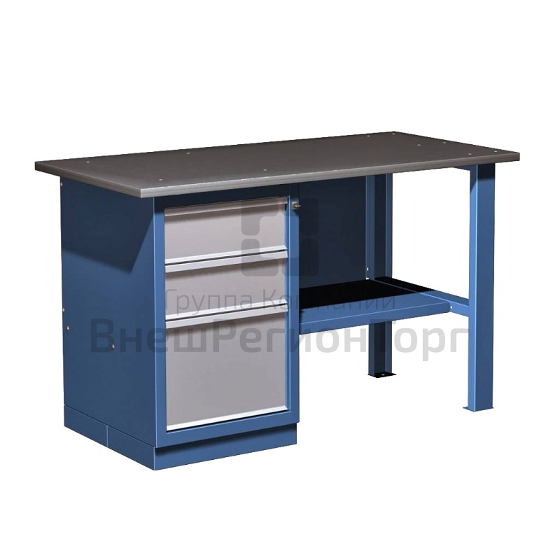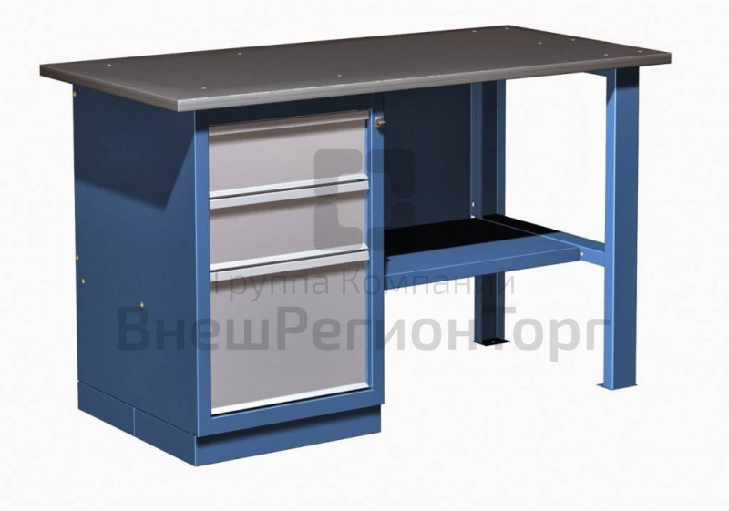 Верстак слесарный металлический однотумбовый (3 ящика) с полкой серии «Эконом»