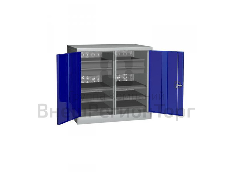 Шкаф оснащен замком "Евролок". Окраска элементов корпуса осуществляется порошковой полимерной краской.