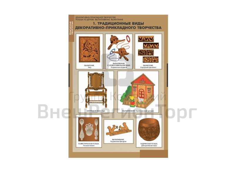 Подробное описание Комплект стендов «Декоративно-прикладное творчество. Резьба по дереву, выпиливание, выжигание» 12 шт