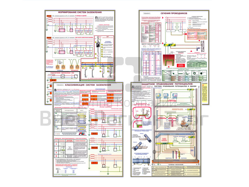 Подробное описание Плакаты «Заземление и защитные меры электробезопасности», 45х60 см, 4 шт.