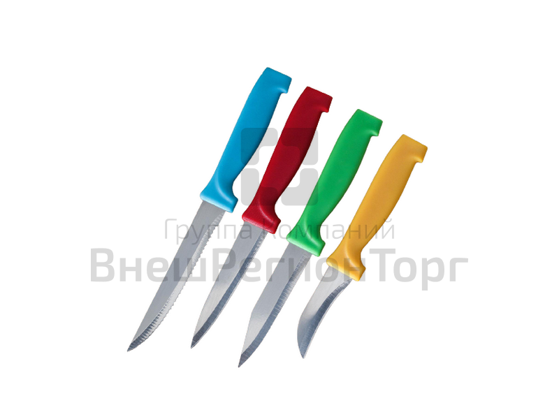 Подробное описание Набор кухонных ножей "Радуга", 4 шт., на подставке