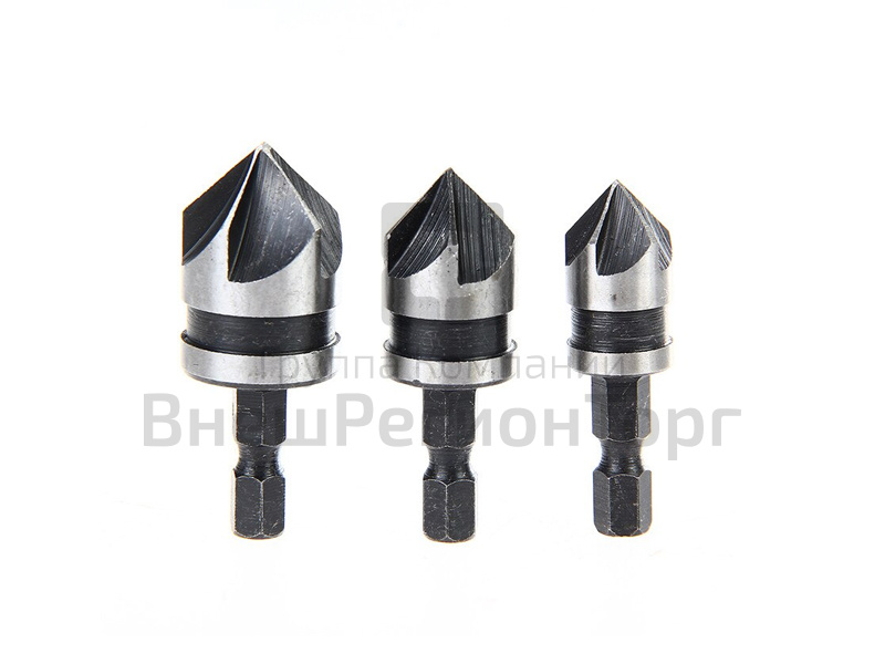 В набор входит 3 зенкера диаметром: 6 мм, 12 мм, 16 мм. Имеют угол проточки 90 градусов.
