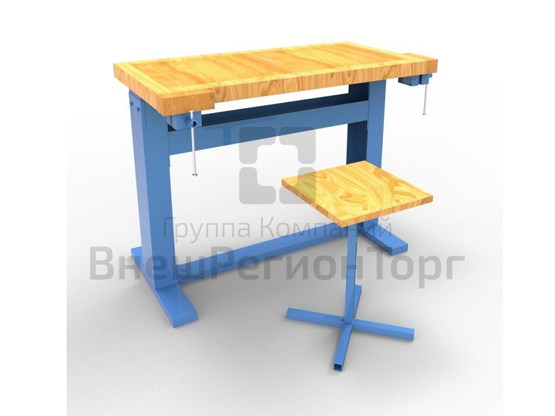 Имеются отверстия для крепления к полу. В комплекте также тиски столярные (2 шт.) и табурет, регулируемый по высоте h460-620 мм.