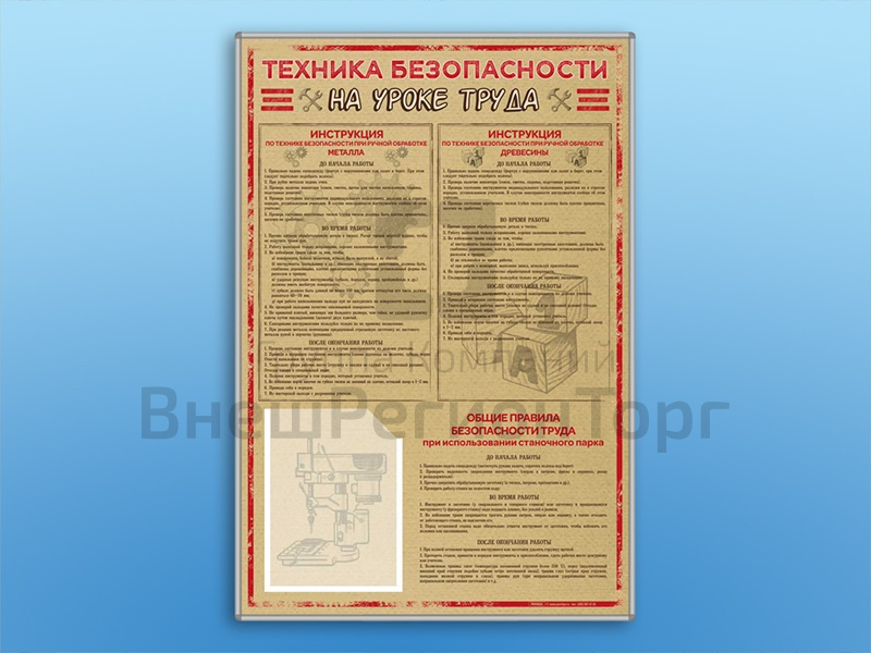 У нас вы можете купить Стенд-уголок «Техника безопасности на уроках труда», сравнить цены, получить прайс-лист, получить отзывы реальных покупателей. Мы соответствуем требованиям ФГОС, ГОСТ и СанПиН. Мы работаем на основании федеральных законов No44-ФЗ и No223-ФЗ.