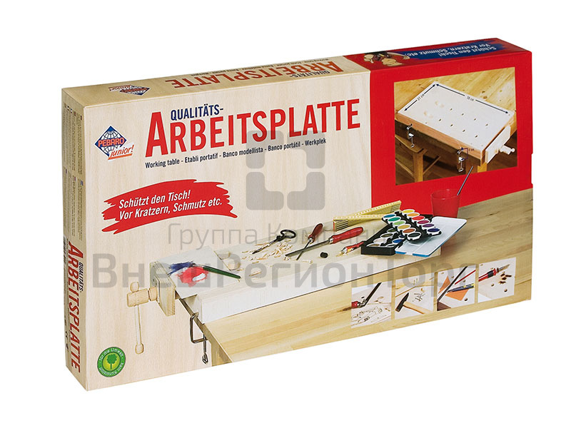Конструкция портативного верстака разработана специально таким образом, чтобы защитить Ваш письменный или обеденный стол от царапин и прочих повреждений. Верстак оборудован зажимом и ограничителями, с помощью которых можно надежно зафиксировать фанерную пластину для выпиливания во время работы.
