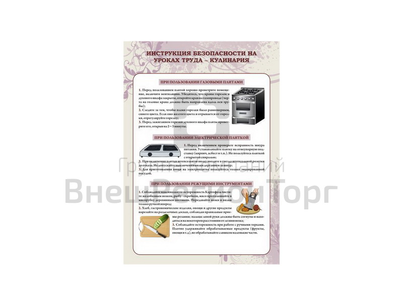 Подробное описание Комплект стендов "Техника безопасности при выполнении кулинарных работ"