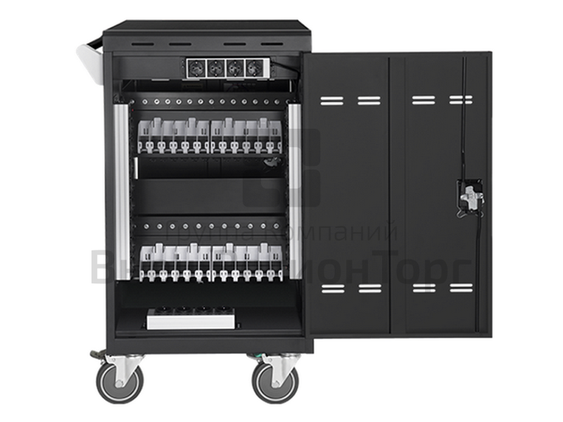 - Имея внутри пространство, достаточное для хранения и подзарядки 24 устройств, сейф-тележка также обладает компактным размером, позволяющим размещать ее в ограниченном пространстве.